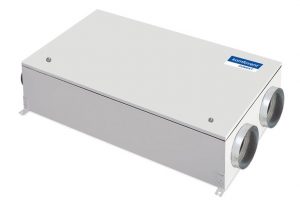 Wymiennik ciepła odzyskuje ciepłe powietrze z wywiewanego pomieszczenia i ogrzewa nim powietrze nawiewane.