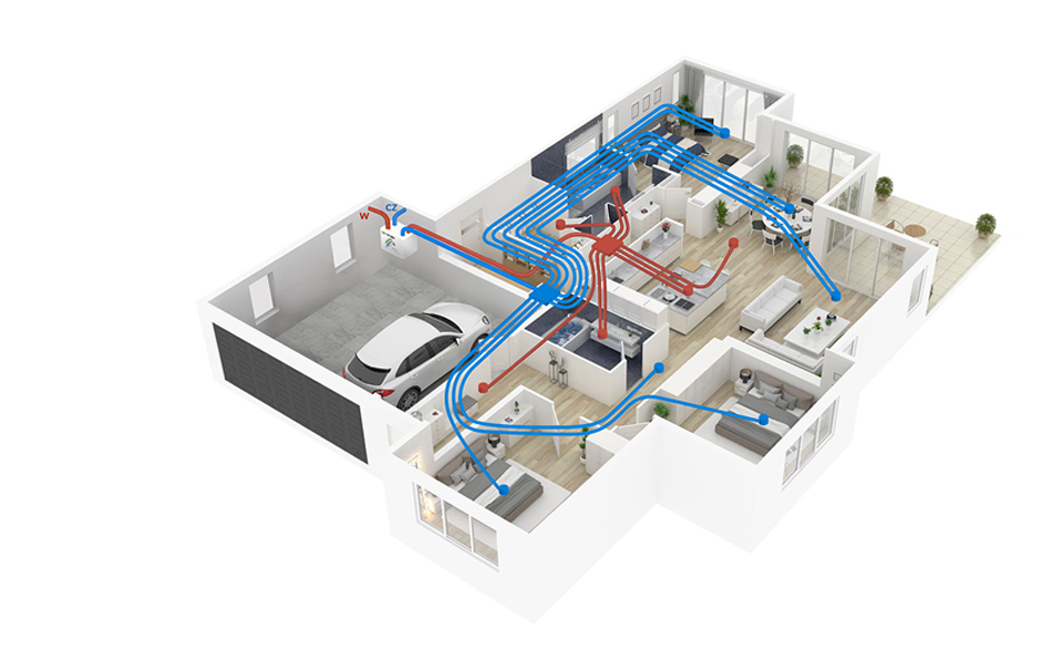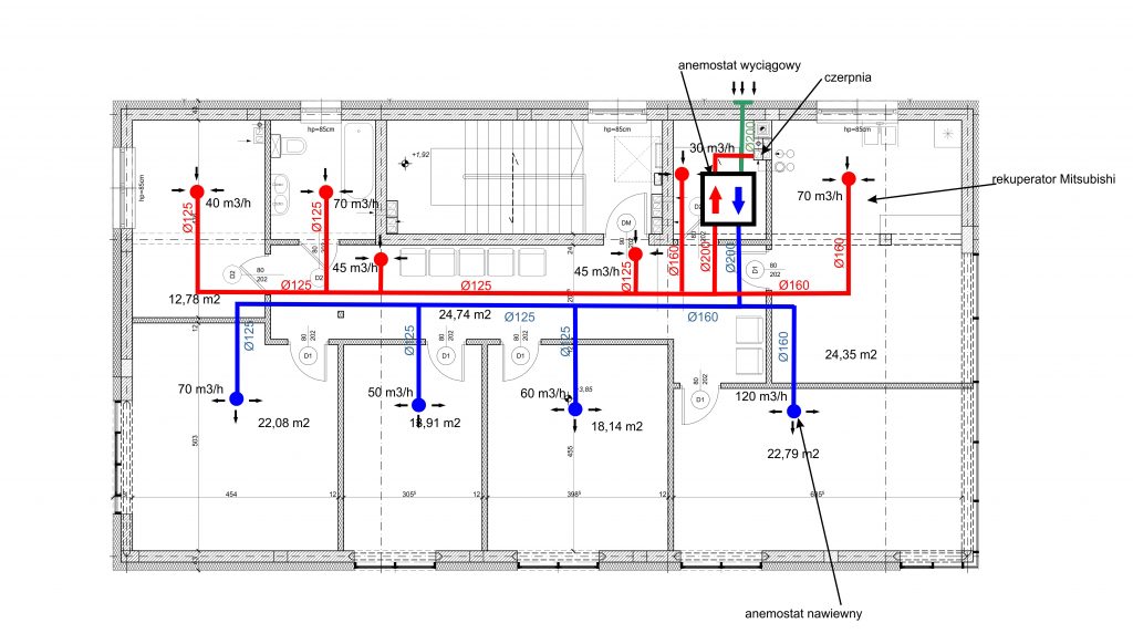 Każdy dom w zależności od układu pomieszczeń, rozmieszczenia łazienek, pokojów jest wentylowany w inny sposób. Dlatego do każdego projektu domu opracowany musi zostać projekt rekuperacji.